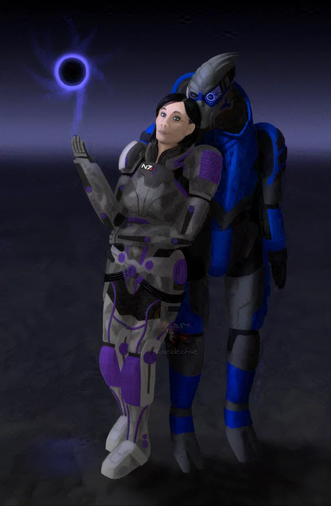 Rebecca Shepard mit ihrem Partner, Garrus Vakarian.